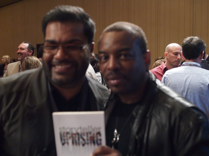 I’ve also vowed to take more pictures with a “real” camera so that I can be more contemplative about using and uploading them. I paid for that vow after Burton’s talk when I handed over my camera to get a photo with him holding my Storyteller Uprising book (I thought it was only fitting that he have a copy). Notice how everything around us is in focus? Should have just used my smartphone.