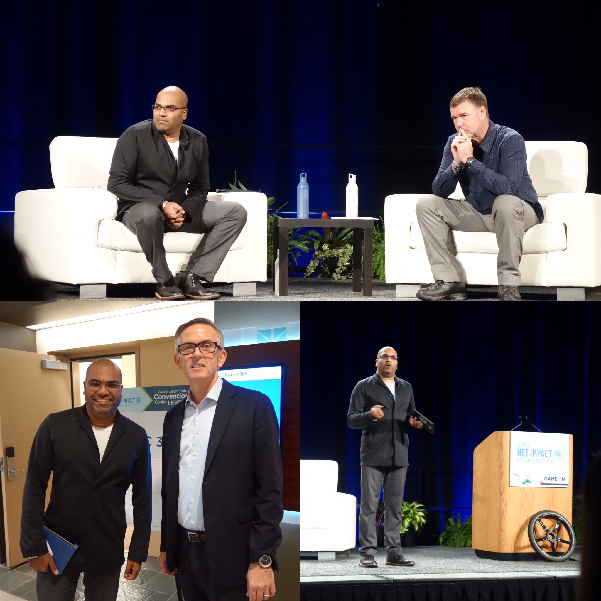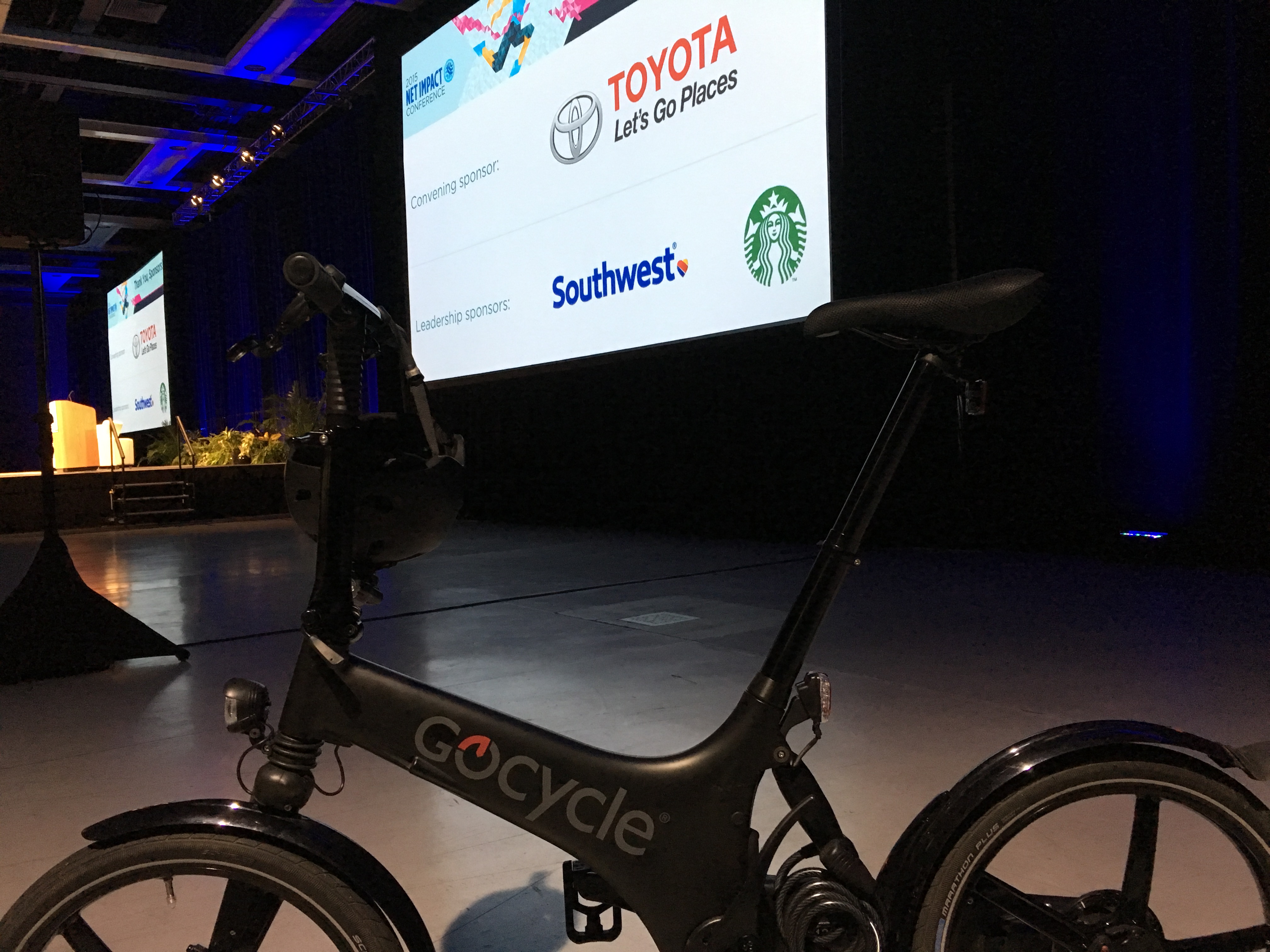 However, technology DID fail me before I even left the house. I had relied on my Weather Channel app to inform how I would get to the Washington State Convention Center that morning: a dry day, perfect for a clean, simple bike commute. But I opened the garage to face the worst of Seattle’s ironic precipitation: a drenching mist. If I weren’t taking to the stage in two hours in front of a hall full of business students and social responsibility professionals, I wouldn’t have troubled myself with a bit of rain. But I didn’t have the luxury of time to dry off that parts that would be highly visible under the lights and on the big screen.